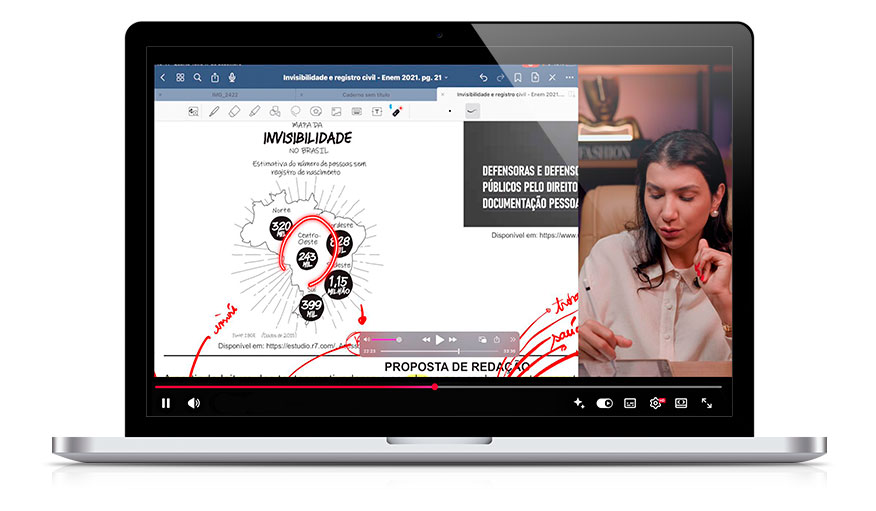 Antes de sair escrevendo, você aprende a desenhar a redação na cabeça (e no papel). Essa organização visual reduz a ansiedade, tira o medo de não saber por onde começar, ganha tempo por não sair apagando o texto e reescrevendo.